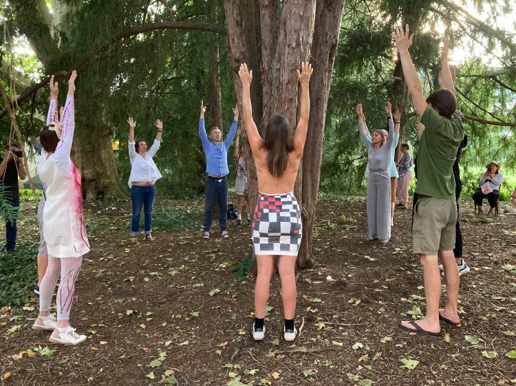 Olen kiitollinen tilaisuudesta kokeilla pientä kaksiosaista performanssia vanhan marjakuusen kanssa puistossa, jonka valitsin koska museon lähellä ei kasvanut mäntyjä. Pyysin katsojia miettimään mitä jos sisällyttäisimme puut käsitykseemme sosiaalisesta? Ensimmäinen osa käsitteli dokumentaatiota ja pyysin katsojia dokumentoimaan tasapainoiluni marjakuusen kanssa haluamallaan tavalla omasta näkökulmastaan. Toinen osa käsitteli osallistumista ja kutsuin katsoja kokeilemaan samaa toimintaa yhdessä minun ja puun kanssa. RC-alustalla on sivu joka sisältää eräänlaisen kollaasin dokumentaatiosta.