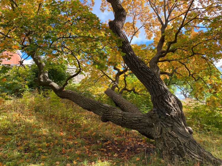Osallistuakseni edes johonkin kulttuuritapahtumaan menin Statens Konstrådin (Valtion taideviraston) uusien tilojen avajaisiin Skeppsholmenilla ja oivalsin miten paljon pidän siitä saaresta. Kun palasin seuraavana päivänä etsimään mahdollista mäntyä jonka kanssa esiintyä en onnistunut löytämään yhtä ainutta mäntypuuta koko saarelta. Sen sijaan Kastellholmen saarella, pieni saari Skeppsholmenin vieressä, kohtasin tämän kauniin vanhan vaahteran (katso kuva alla), joka kanssa todella haluaisin tehdä yhteistyötä. Ainoa ongelma on, että se ei ole mänty, joten en voi oikein kytkeä mahdollista yhteistyötä tähän hankkeeseen. Sen on siis oltava jonkinlainen syrjähyppy, luultavasti.