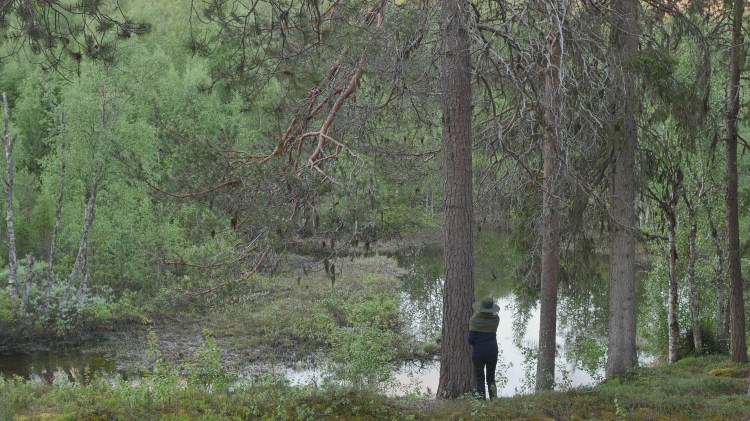 Kaksi uutta mäntyä, joita tapailin lyhyemmän ajan, olivat ensinnä eräs monista kauniista männyistä Hietaniemessä Helsingissä, jonka kanssa keskustelin Citizen Pine -työtä varten (katso kuva yllä), ja aivan äskettäin mänty Äkäslompolossa Pohjois-Suomessa, jonka kanssa vietin vuorokauden teosta Midnight to Midnight varten (katso kuvat alla). Jälkimmäisen tapasin Gifts from the Sentient Forest -hankkeen järjestämässä retriitissä, ja sen luo toivon voivani palata syyskuussa.