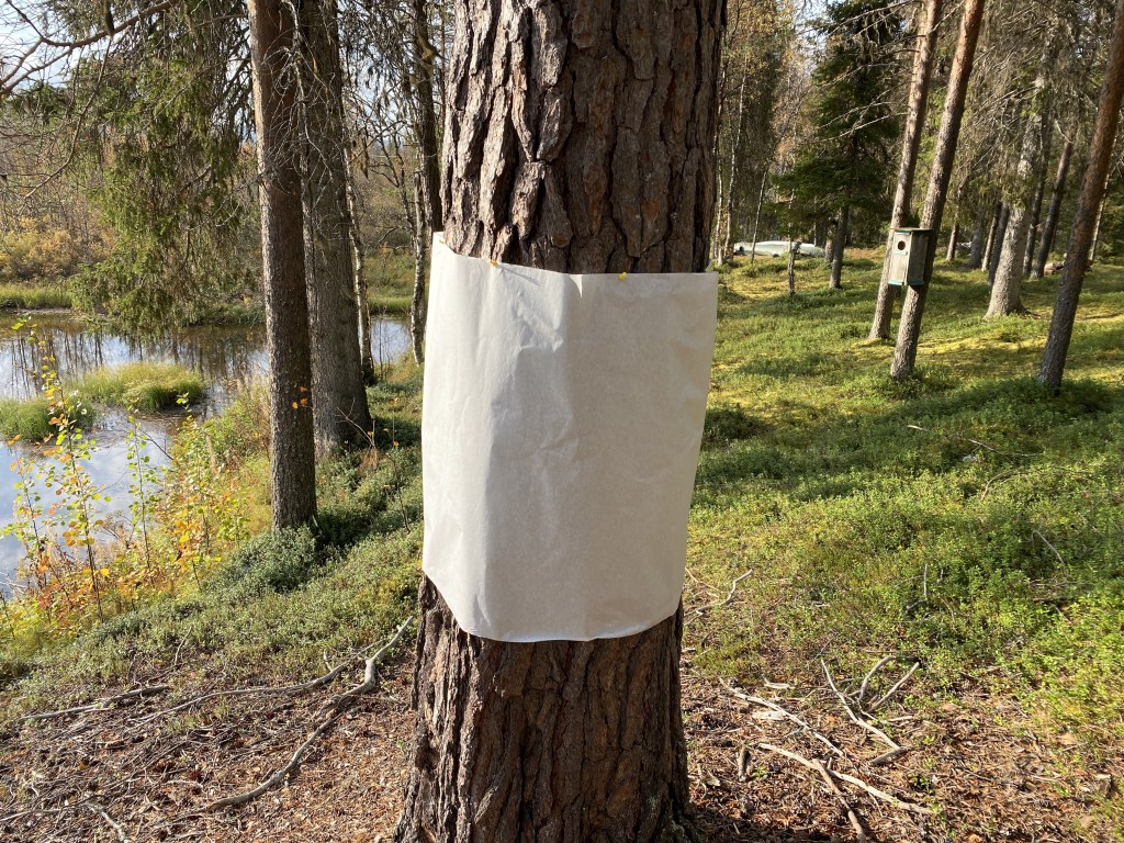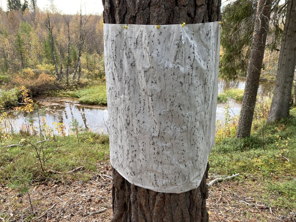 Osana hanketta Gifts from the Sentient Forest minulla oli tilaisuus palata saman joen partaalla kasvavan männyn luokse Äkäslompolossa heti Stenan majojen alapuolella, joissa asuimme. Ensimmäisellä kerralla vieraillessani männyn luona esiinnyimme yhdessä videokameralla joka toinen tunti vuorokauden ajan ja omana osuutenani yritin soittaa huuliharppua männylle. (Katso dokumentaatio RC-alustalla) Tällä kertaa kirjoitin männylle kirjeen, suomeksi, ja tallensin tietysti kirjoittamisen toimintana videolle, kuten tapani on. (Katso dokumentaatio RC-alustalla, sivun alalaidassa) Lisäksi tein joitakin kokeiluja eräänlaisella ‘frottage’ tekniikalla, japanilaisella paperilla jonka käärin männyn rungon ympärille. Yritin ensin grafiittiliidulla ja sitten kiinalaisella musteella, jota eräs kollega (Satu Kalliokuusi) ystävällisesti antoi minulle, ja joka toimi paljon paremmin. Valokuvista tässä alla saa ehkä jonkinlaisen käsityksen ideasta. Nyt suunnittelen kokeilevani samaa tekniikkaa joidenkin Kaivopuiston mäntyjen kanssa. Ovatko jäljet riittävän kiinnostavia esitettäväksi jollakin tapaa vai toimivatko ne ainoastaan valokuvina, jää nähtäväksi.