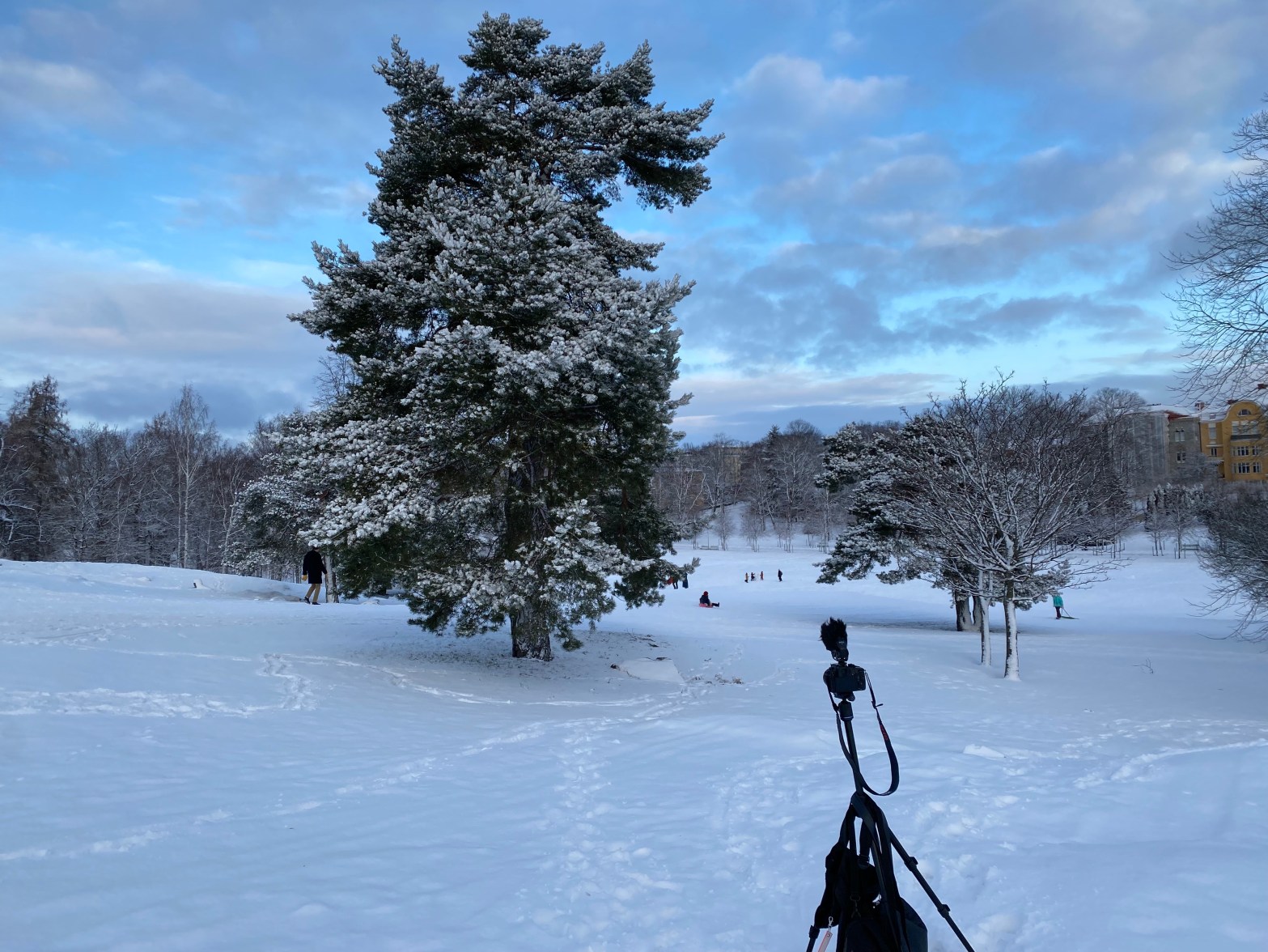 Olen löytänyt udden männyn, jonka kassa tehdä yhteistyötä Fredhällin kalliolla Kungsholmenin saarella Tukholmassa aivan Essingeleden moottoritien vieressä. Mänty on pieni ja tukeva toisin kuin muut alueen männyt, jotka ovat kookkaita ja korkeita, joten osa latvasta mahtuu mukaan kuvaan, ja se kasvaa myös hiukan sivussa suhteessa polkuun. Kameran jalustalle on tilaa ja vielä penkkikin tavaroille. Videokuvassa… Continue reading Essingeledenin luona