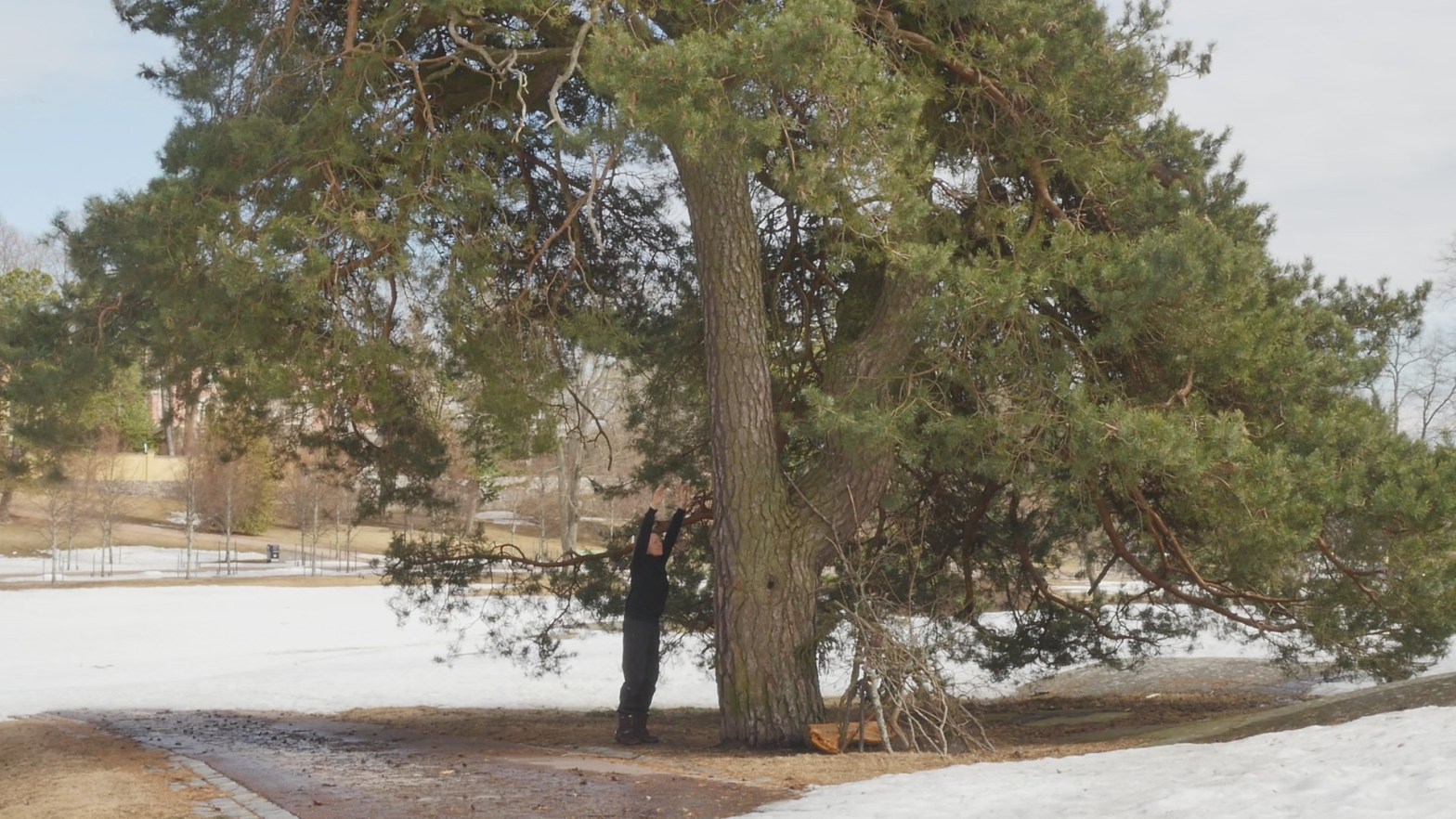 Maaliskuun loppu ja huhtikuun alku Helsingissä on ollut varsinainen takatalvi. Lunta on satanut harva se päivä, ja Kaivopuiston rinteet ovat edelleen jäässä. Käydessäni männyn luona viimeistä kertaa vähään aikaan aurinko vihdoinkin lämmitti hiukan. Lumisen maiseman asteittaiset muutokset voi nähdä stillkuvista (katso täällä). Olen lisännyt uuden elementin harjoitukseeni, eli Tai Chi asennon jälkeen teen puun toisella… Continue reading Takatalvi