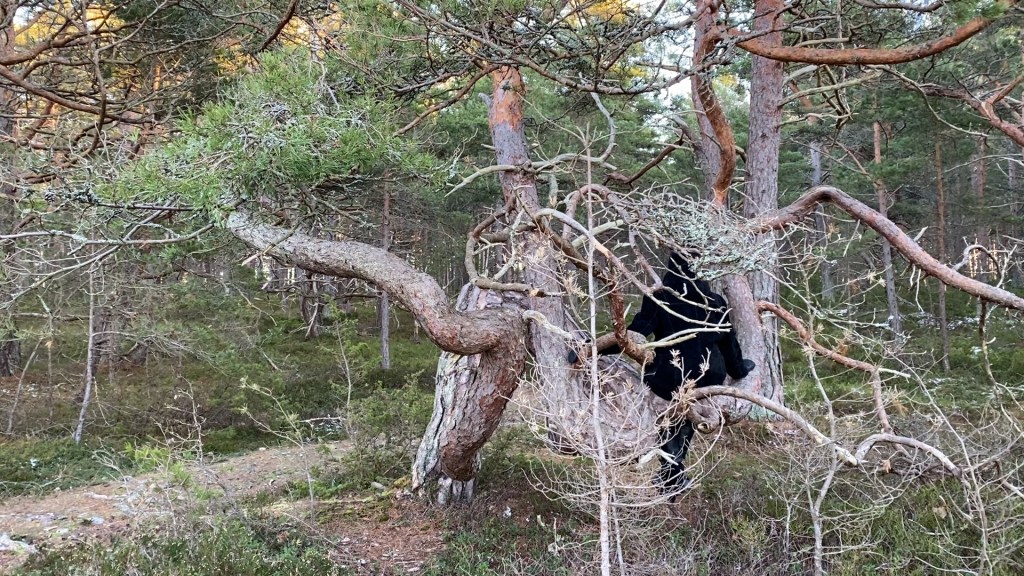 On 24.11.2023 I returned to and ‘hold hands’ with the pine that I performed The Pine Next Door with during the year 2021, see the page Revisiting the Pines on Örö.